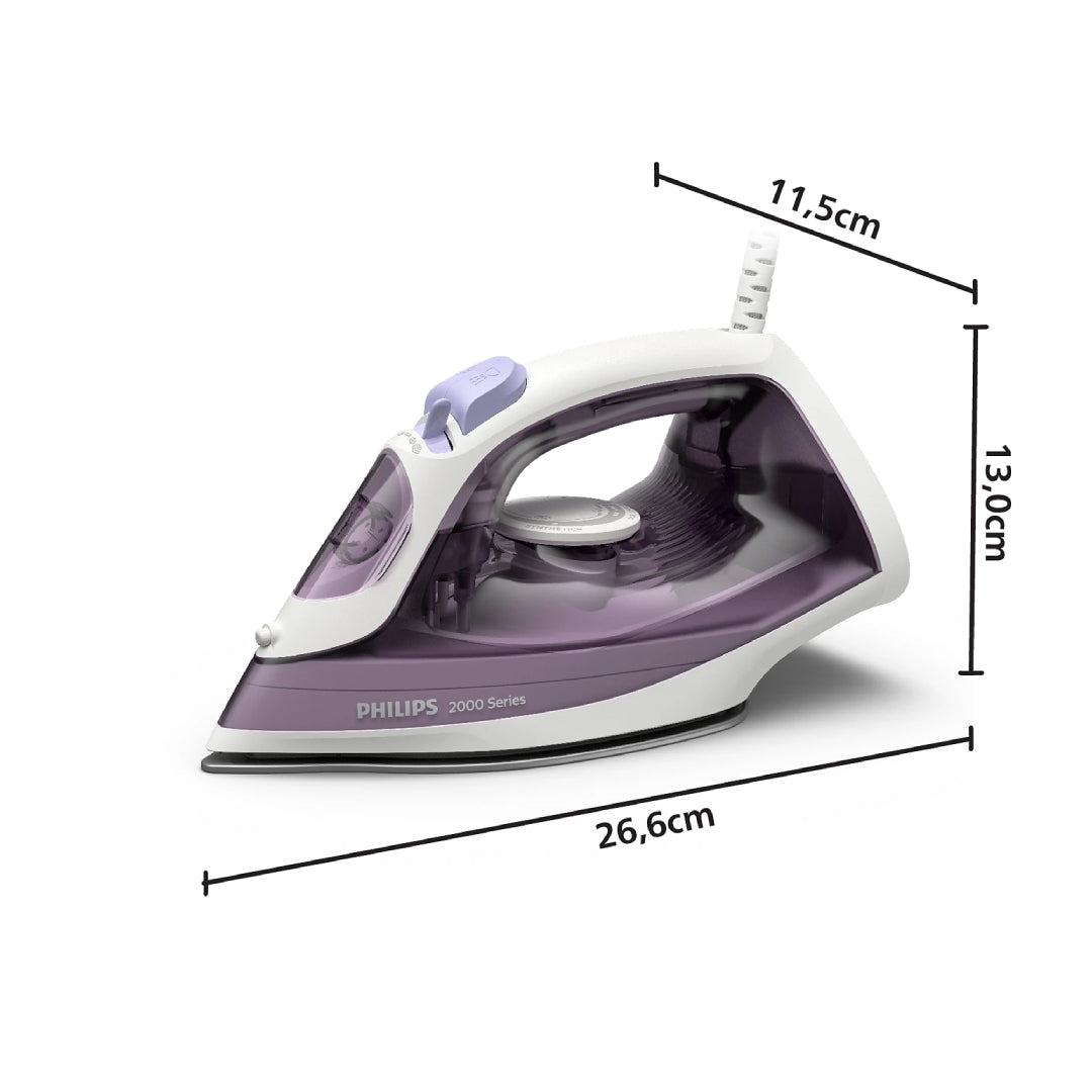 Iron effortlessly with the lightweight DST2000 Series iron. Its powerful steam up to 25g/min and steam boost tackle tough creases effectively, while the ceramic soleplate ensures smooth gliding on all ironable fabrics.